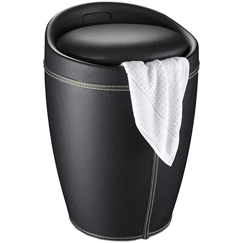 Modern round bathroom stoolMade from sturdy black ABS plasticComfortable padded seat surfaceWith removable laundry bag with a capacity of 20...