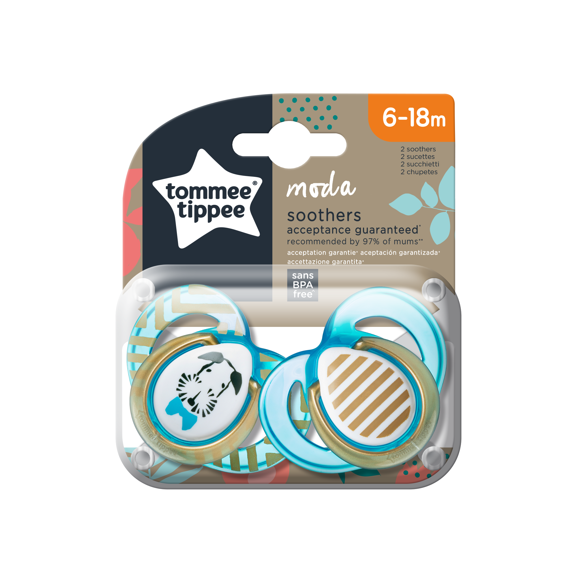 Tommee Tippee Moda Soother 6-18 Months (2 Pack): Offer your little one the comfort of a soft, one-piece silicone soother,...