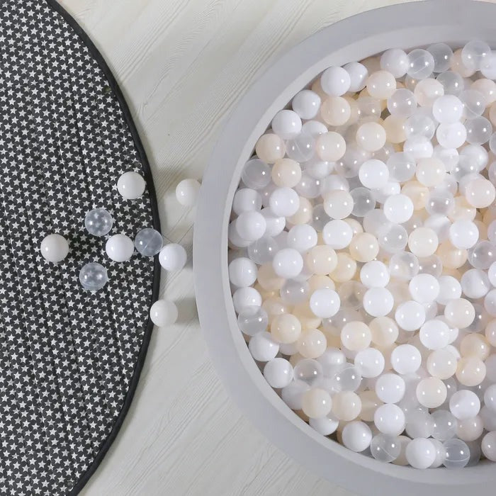 Miila Baby Toy Balls 100-Pack delivers endless fun and sensory stimulation with vibrant colors including white, grey, pink, aqua blue, and blue. Perfect for playpens,...