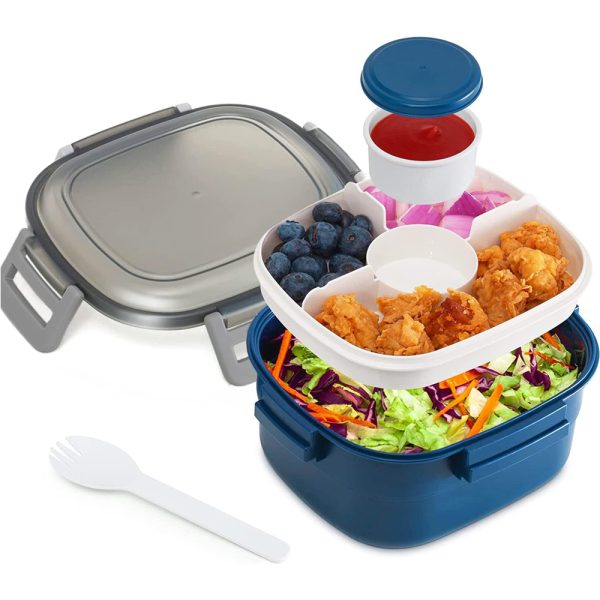 Bento Lunch Box with 5 Compartments, with Dressing Container, 1300 ml