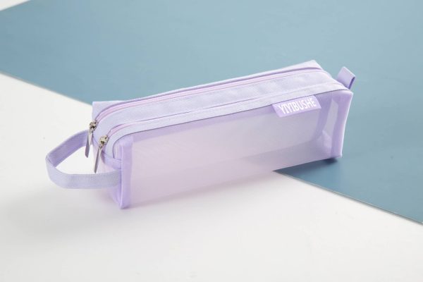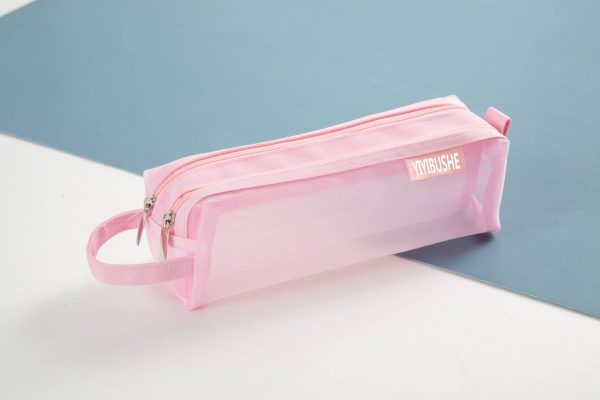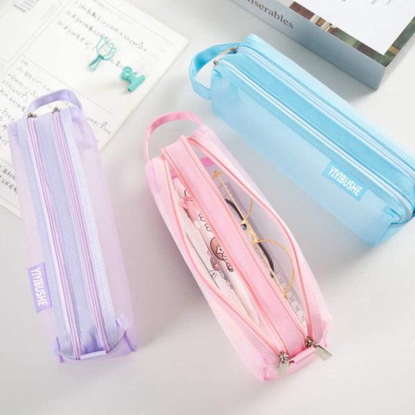 Double Zipper Mesh Pen Case Clear Trial Pencil