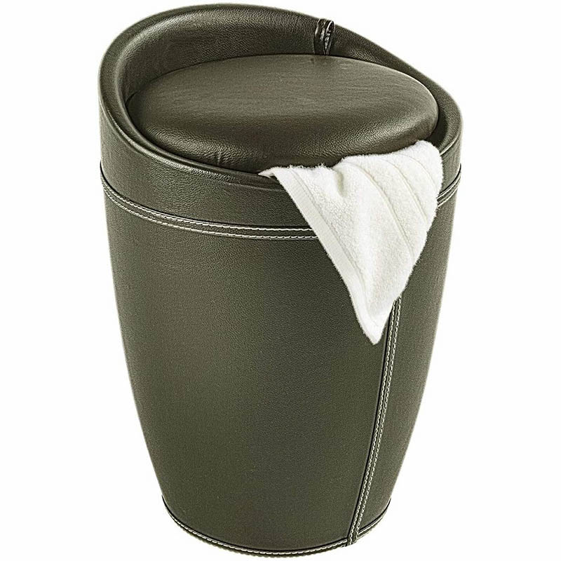 Wenko Bathroom stool Candy Brown Leather Look laundry collector