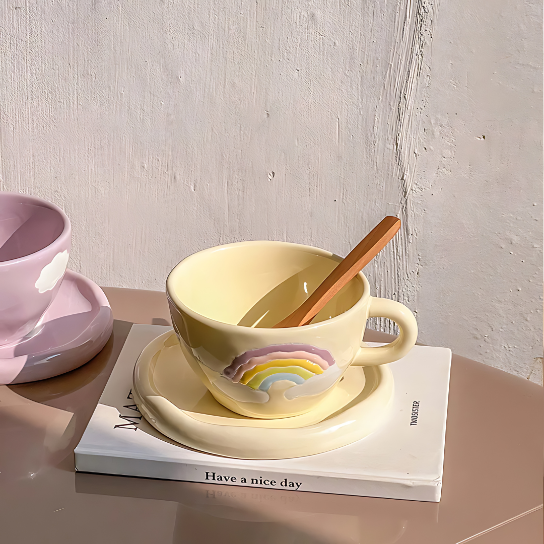 Unique Design Coffee cups and saucers are designed with rainbow and cloud elements, giving them a novel and unique appearance...