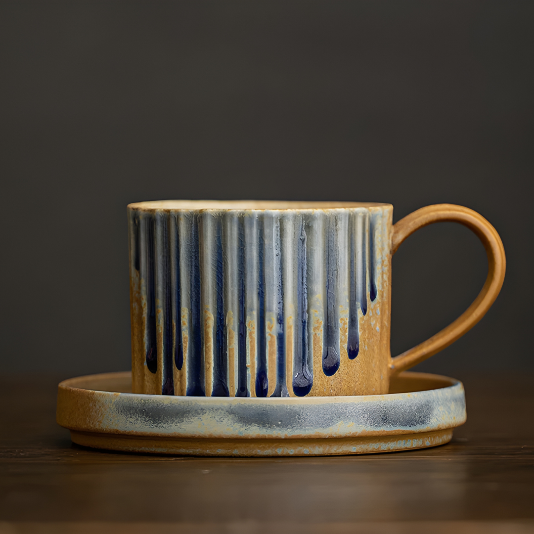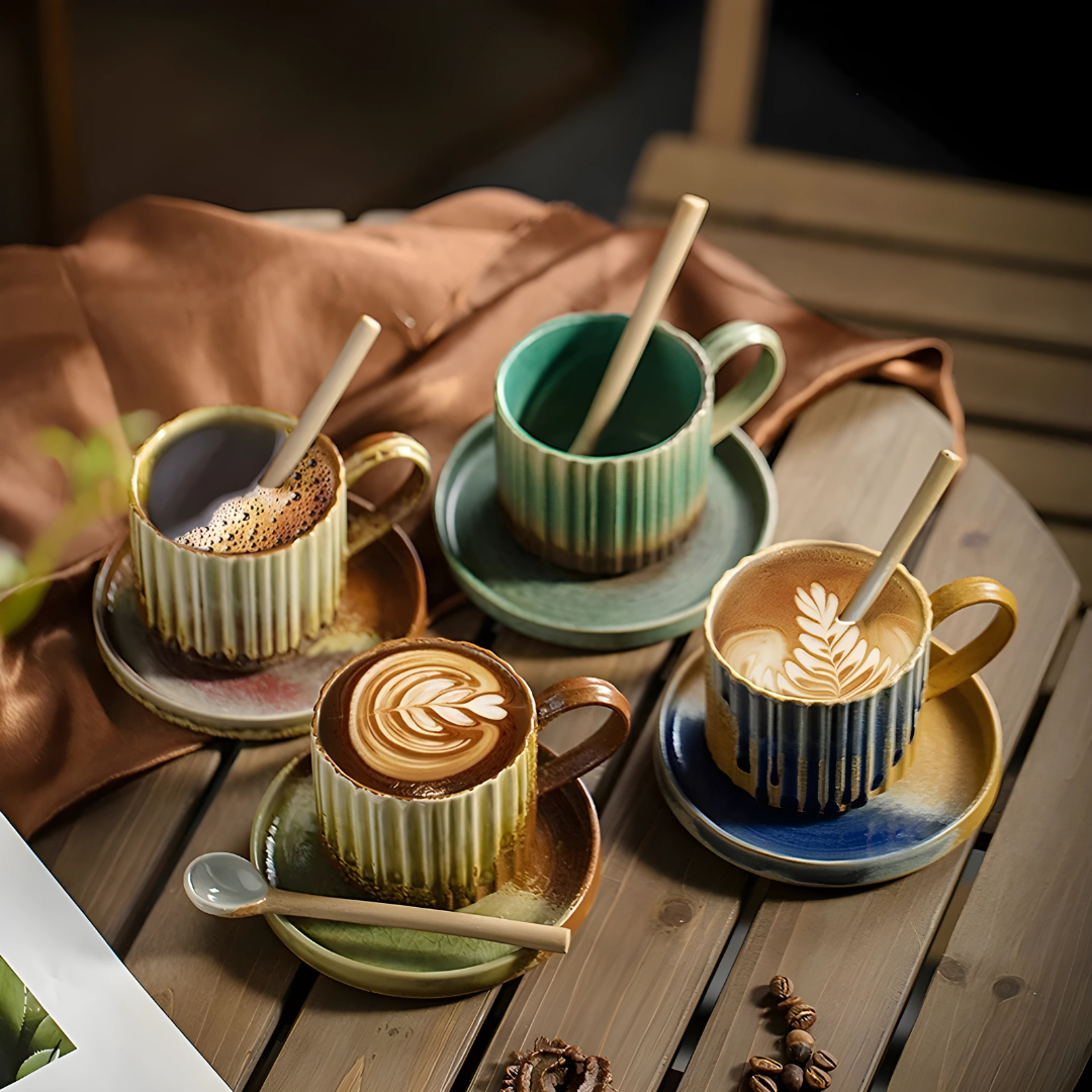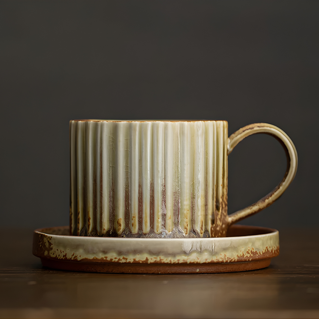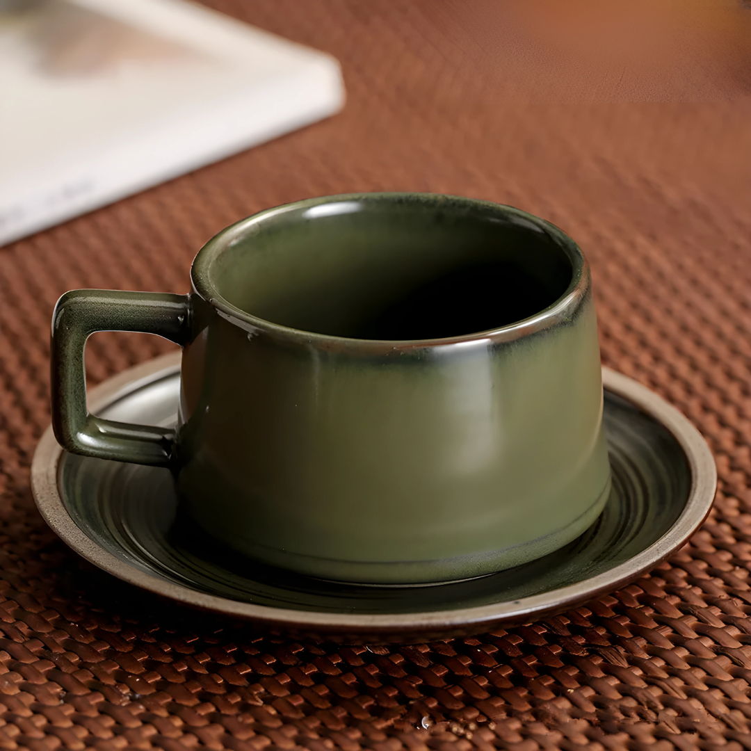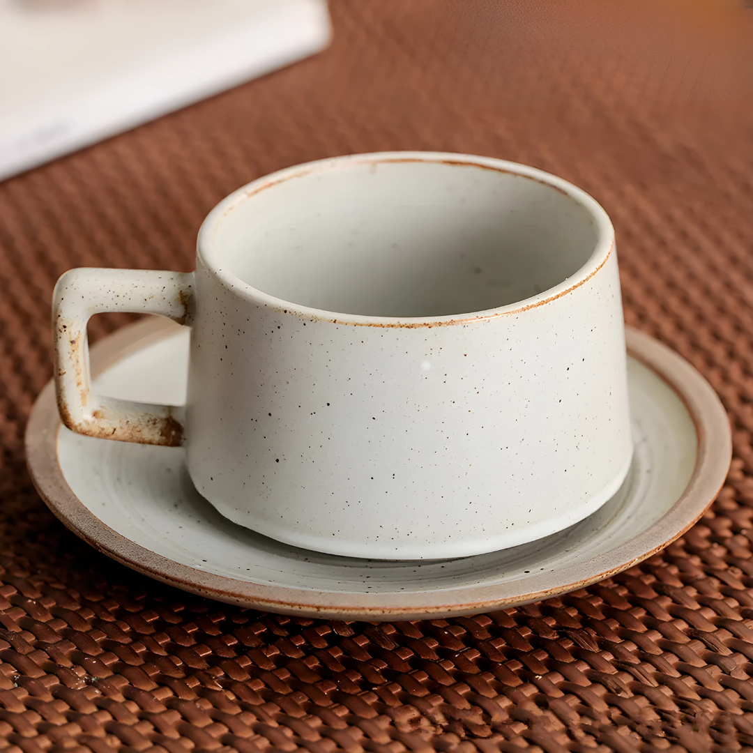 Elegant 250ml Retro Stoneware Cup and Saucer