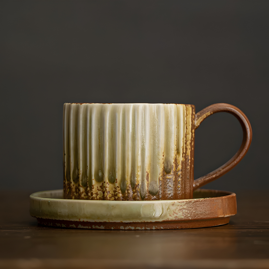 Japanese Style Rough Pottery Tea Cup and Saucer Set 270ML