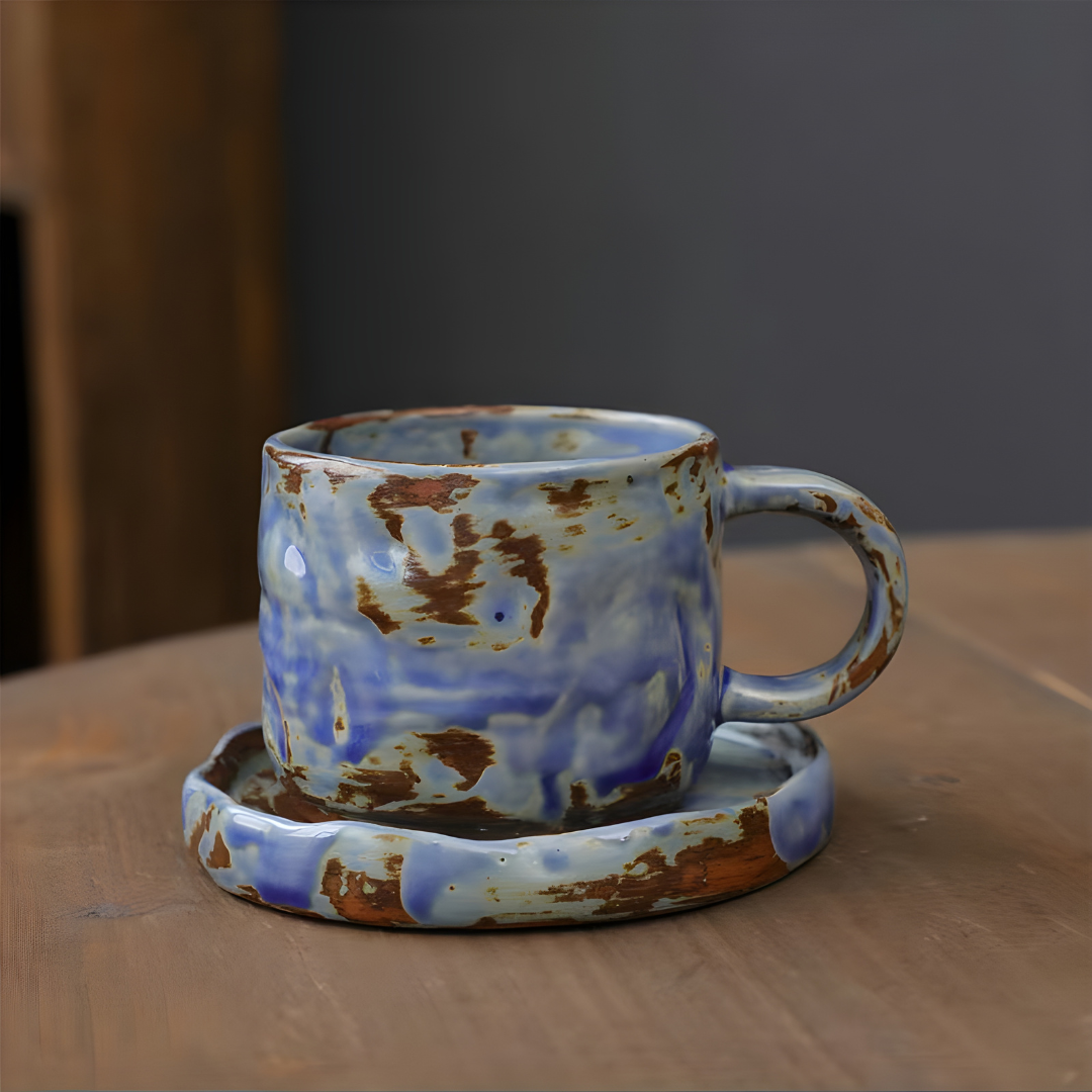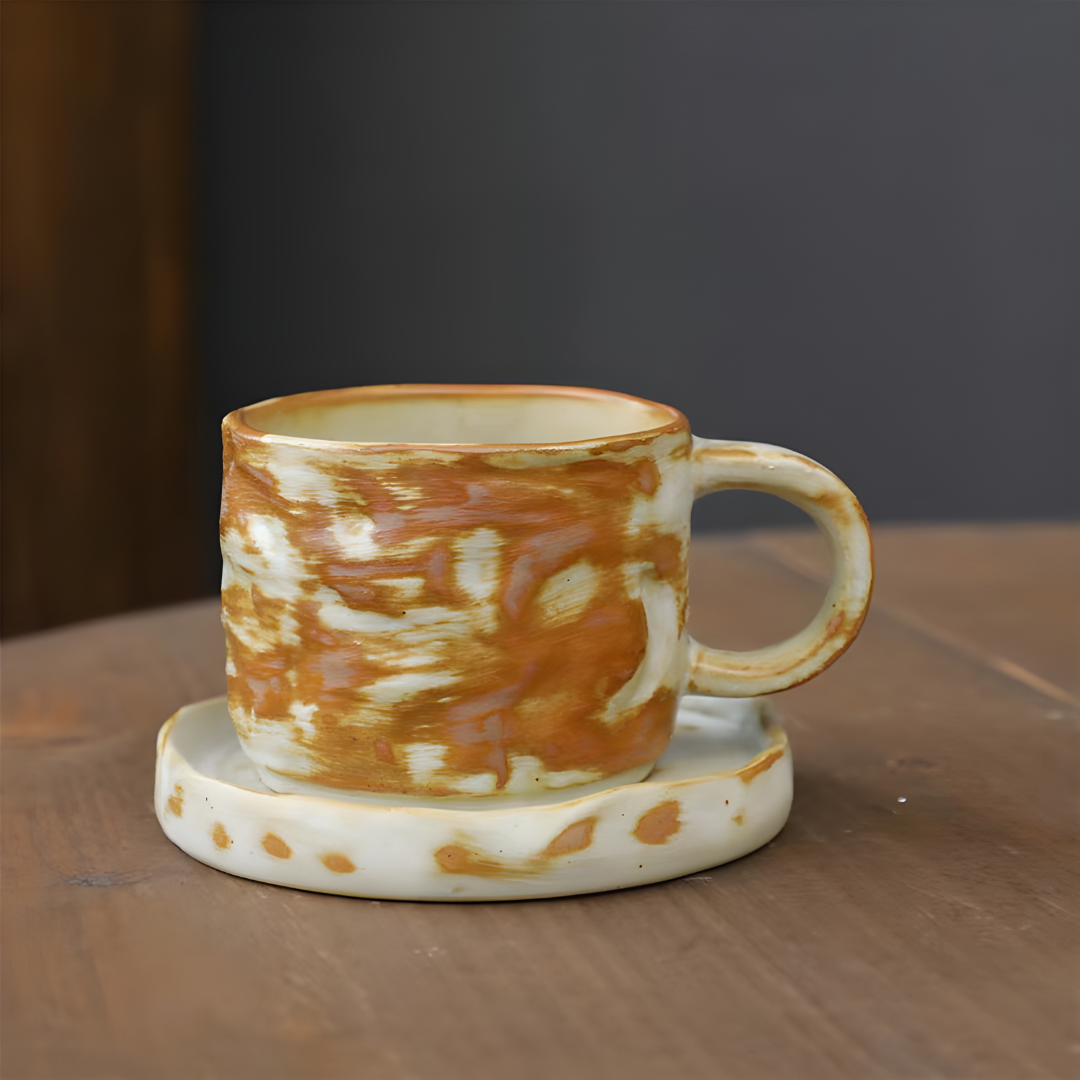 Japanese Style Rough Pottery Tea Cup and Saucer Set, a 270ml masterpiece crafted for those who seek both taste and...