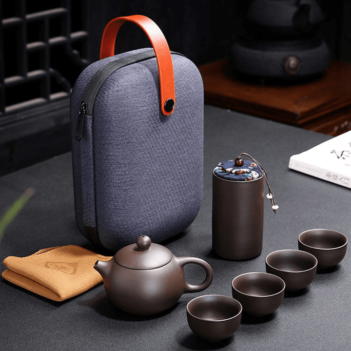 Portable Travel Tea Set Perfect Tea Gift Includes a travel bag and 6 packs 100% handmade purple clay tea set...