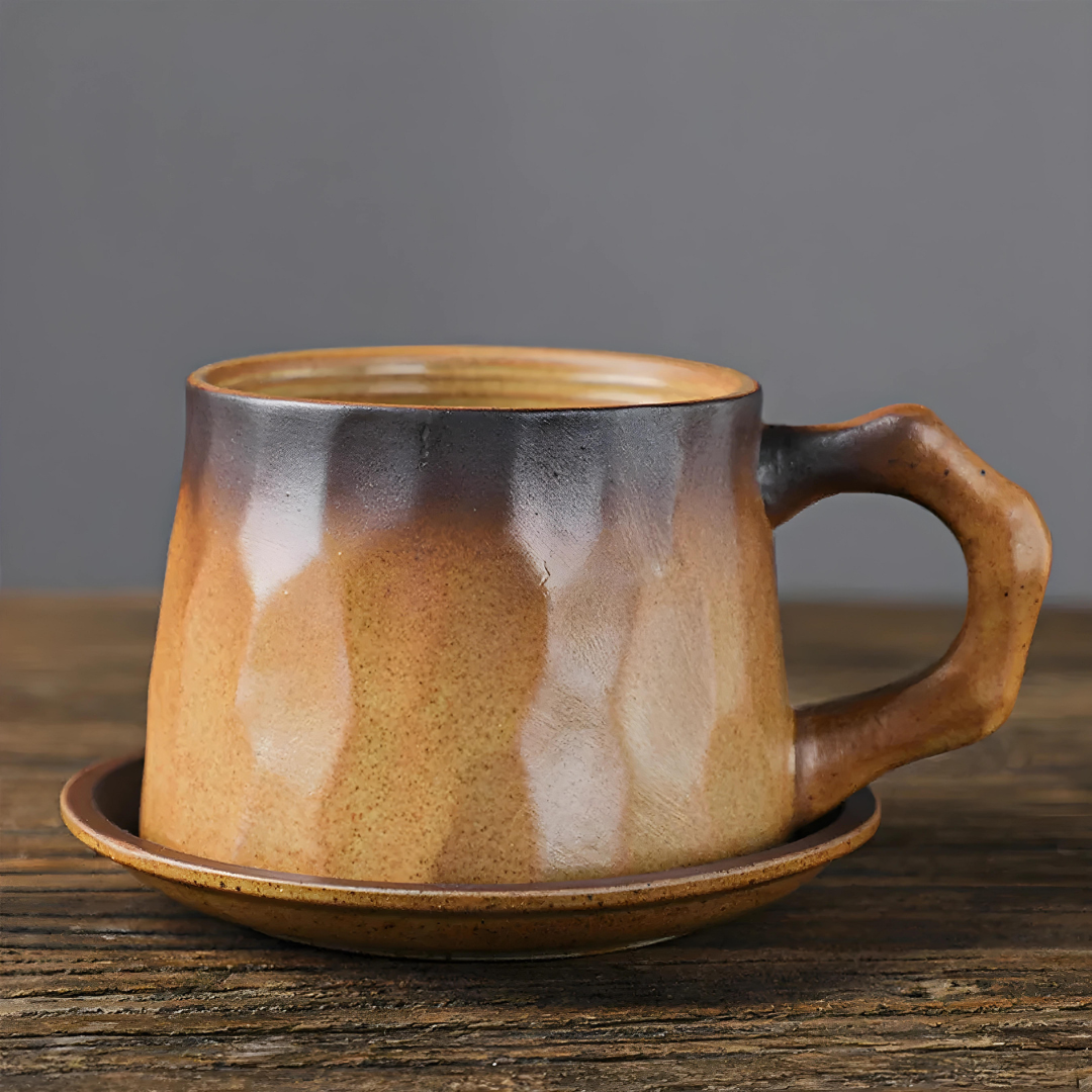 Handmade Japanese Coffee Mug With Saucer And Handle 320ML