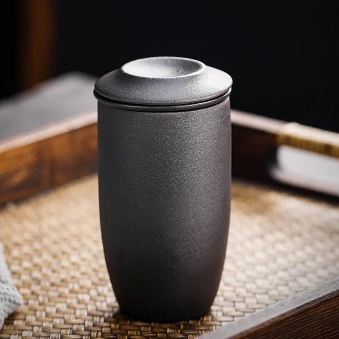 Japanese Style Stoneware Filter Tea Cup With Lid 225Ml(