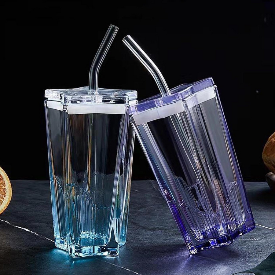 Gradient Star Glass Tumbler: 275ml Mug with Lid & Straw for Coffee, Juice, and Milk
