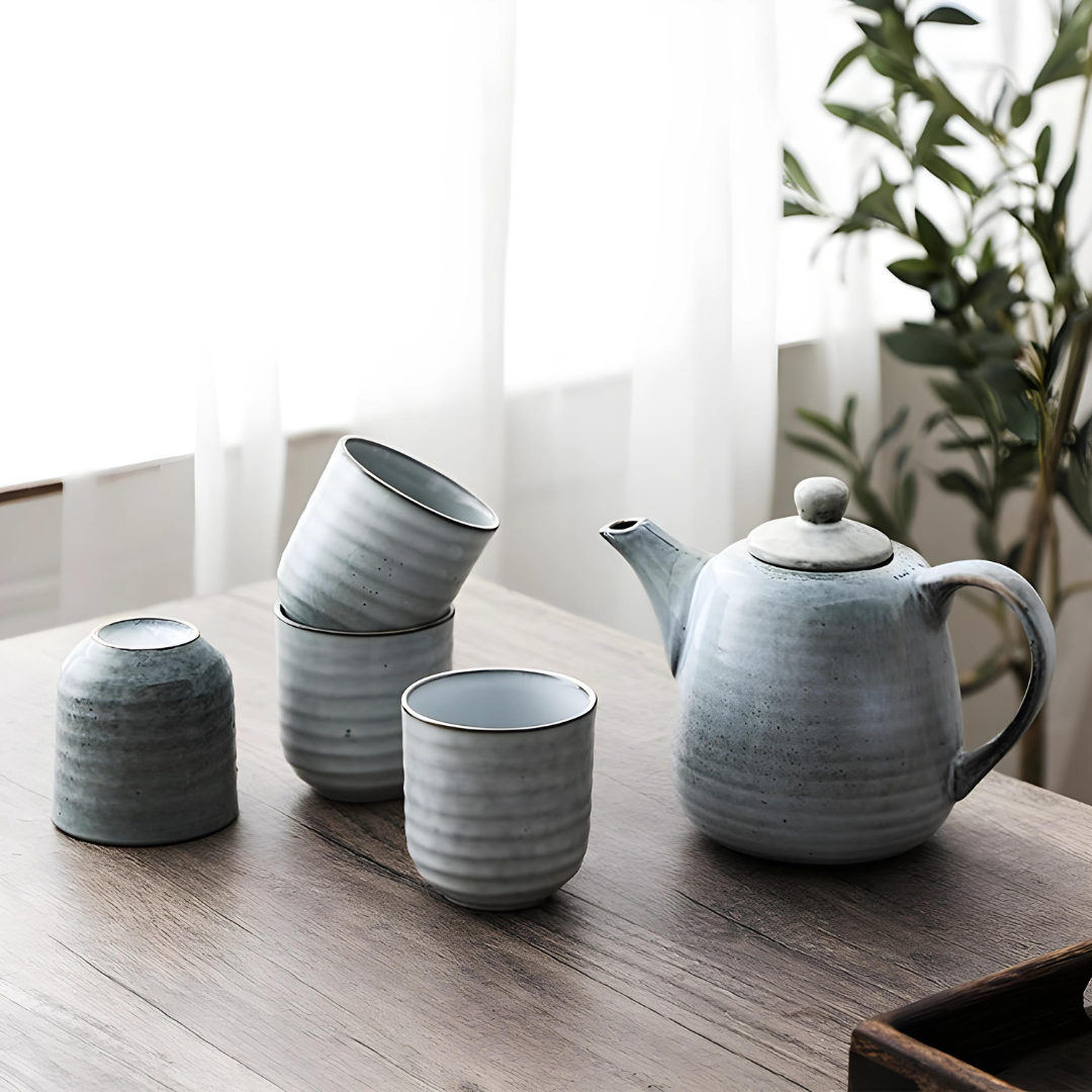 Vintage Gray Reactive Glaze Ceramic Tea Set - 750ml Teapot with 4 Matching Cups