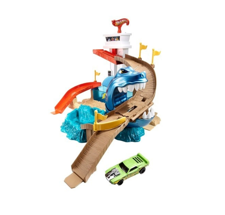Sharkport Showdown is a toy car track set for Hot Wheels cars. It features a giant shark with chomping jaws...