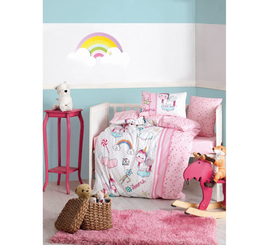 Duvet Cover : 100x150 cm Sheet : 120x150 cm Standard Pillowcase: 35x45 cm (2 Pieces) Fabric-Ranforce: 30/1 57 Wire 100%...