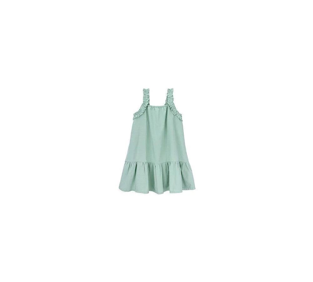 -Cotton Mariam dress, square neckline, frilled straps, low back. -Made in Portugal. -100% cotton -Item code : VE23HL3212 -168-Basil green...
