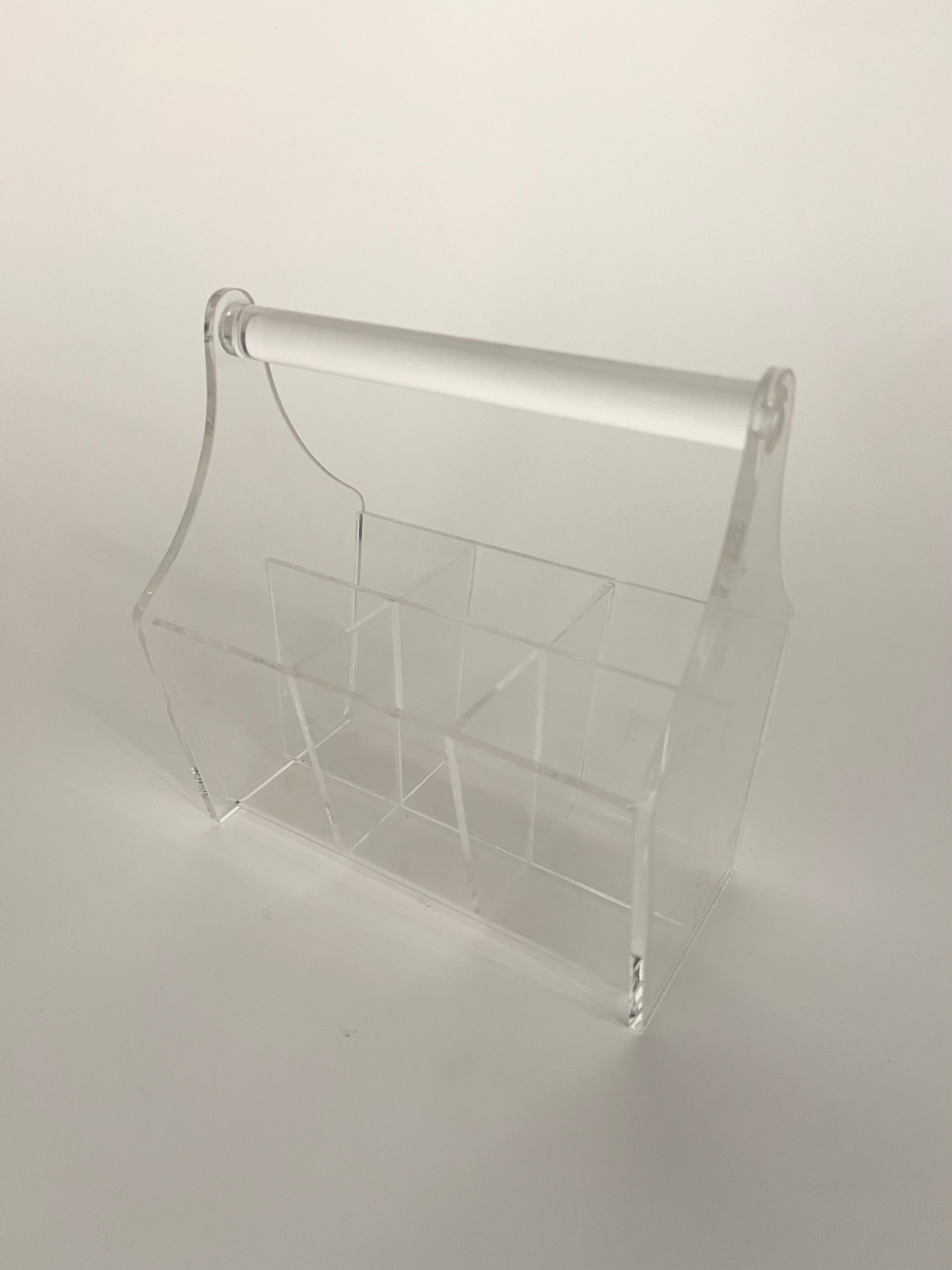 Plexiglass Cutleries Holder with 6 Compartments Size is 22x14x23cm. The Plexiglass Cutlery Holder. Crafted with meticulous attention to detail, this...