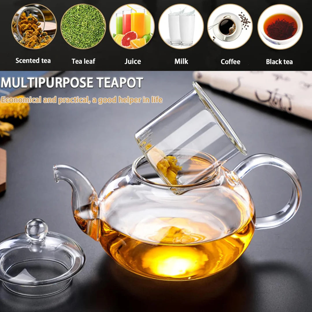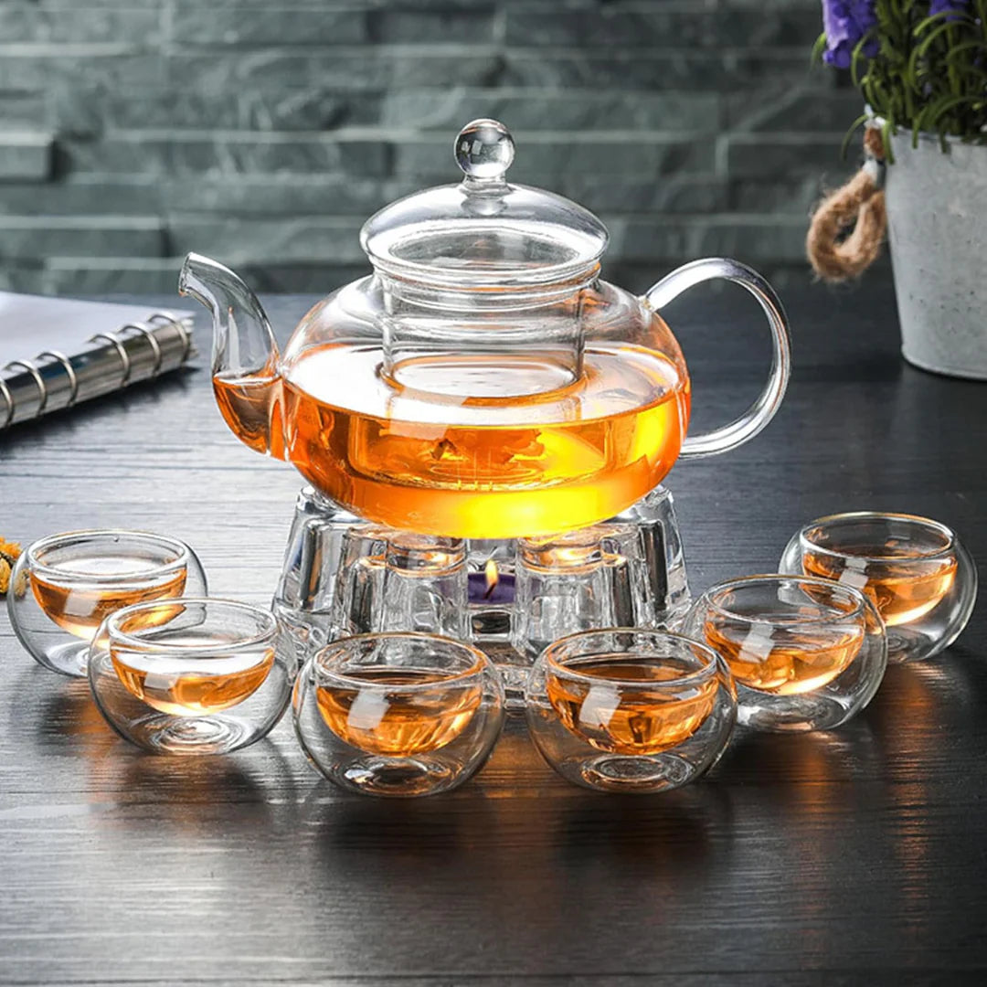 600ml Glass Tea Pot With Glass Cups Warmer High Borosilicate Glass