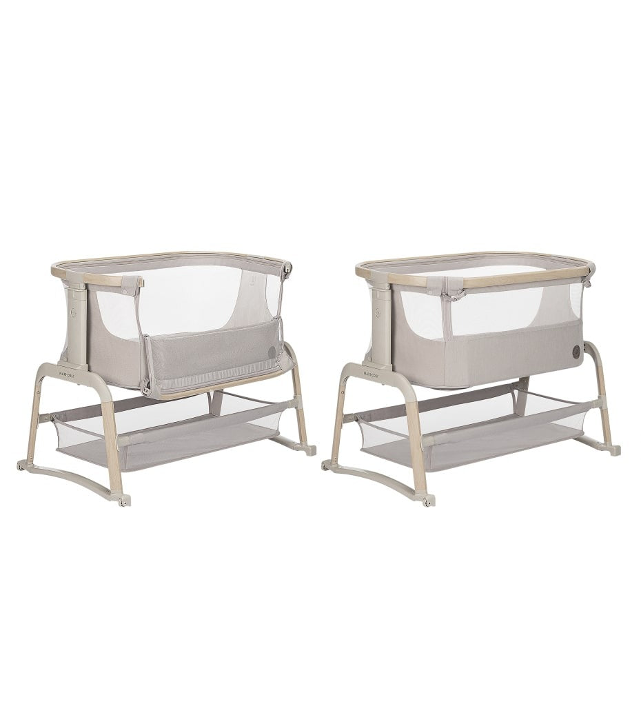 Having your newborn home, is such a special time. The Maxi-Cosi Iora Air is an extra-comfortable, soothing co-sleeper, designed to keep your baby close and deepen that special bond. A sumptuously thick mattress will provide all the comfort your little one needs. And for the more challenging nap times, a handy rocking-function will help soothe your baby back to sleep. Made with super-soft, premium, 100% recycled fabrics, the Iora Air features an all-round, breathable mesh fabric. And a large storage basket underneath ensures all your baby essentials are within reach, for around-the-clock care. WARNING: The product shall not be used before reading the instructions for use.The crib is not suitable for children who can sit or kneel or pull themselves up.