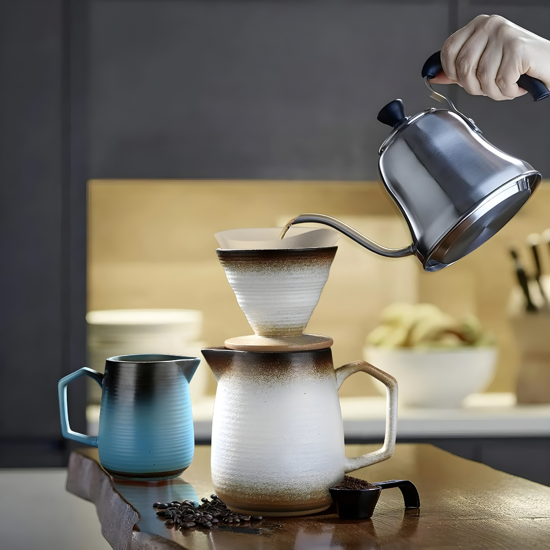 This Pour Over Coffee Maker Set is crafted from high-quality ceramic, offering excellent heat retention and durability