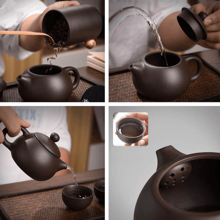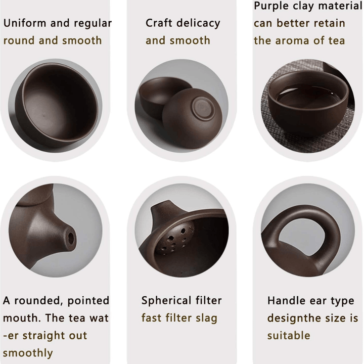 Includes a travel bag and 6 packs 100% handmade purple clay tea set