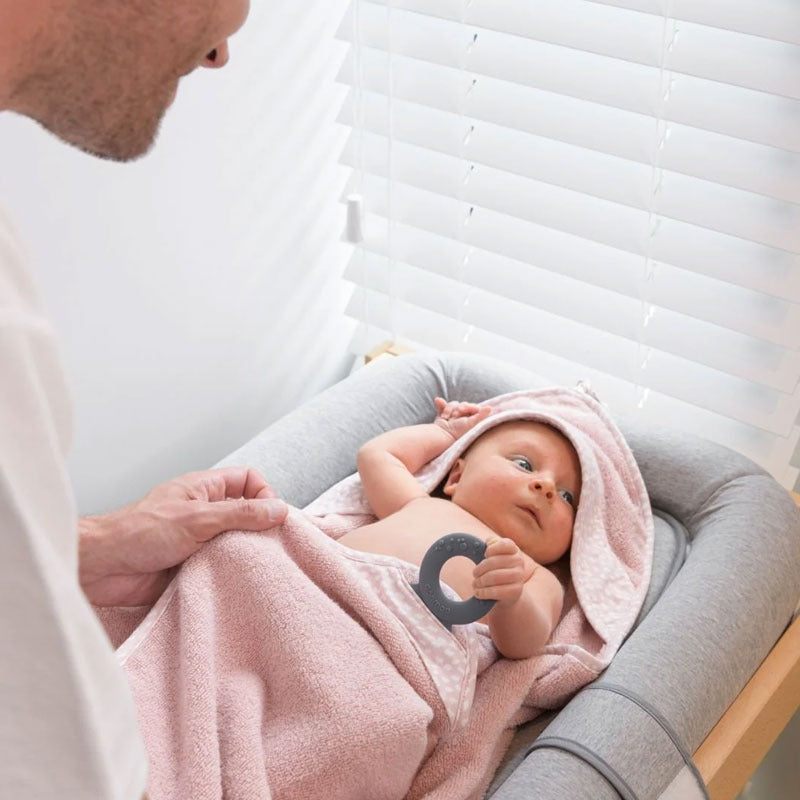 A clever silicone teether attachment allows you to secure the cape around your neck like an apron, keeping your hands free while bathing your little one—no more unexpected splashes! When it's time to lift them out, simply detach the hood and wrap your baby in warmth and softness. The teether doubles as a toy, keeping little hands busy while they dry off on the changing table.