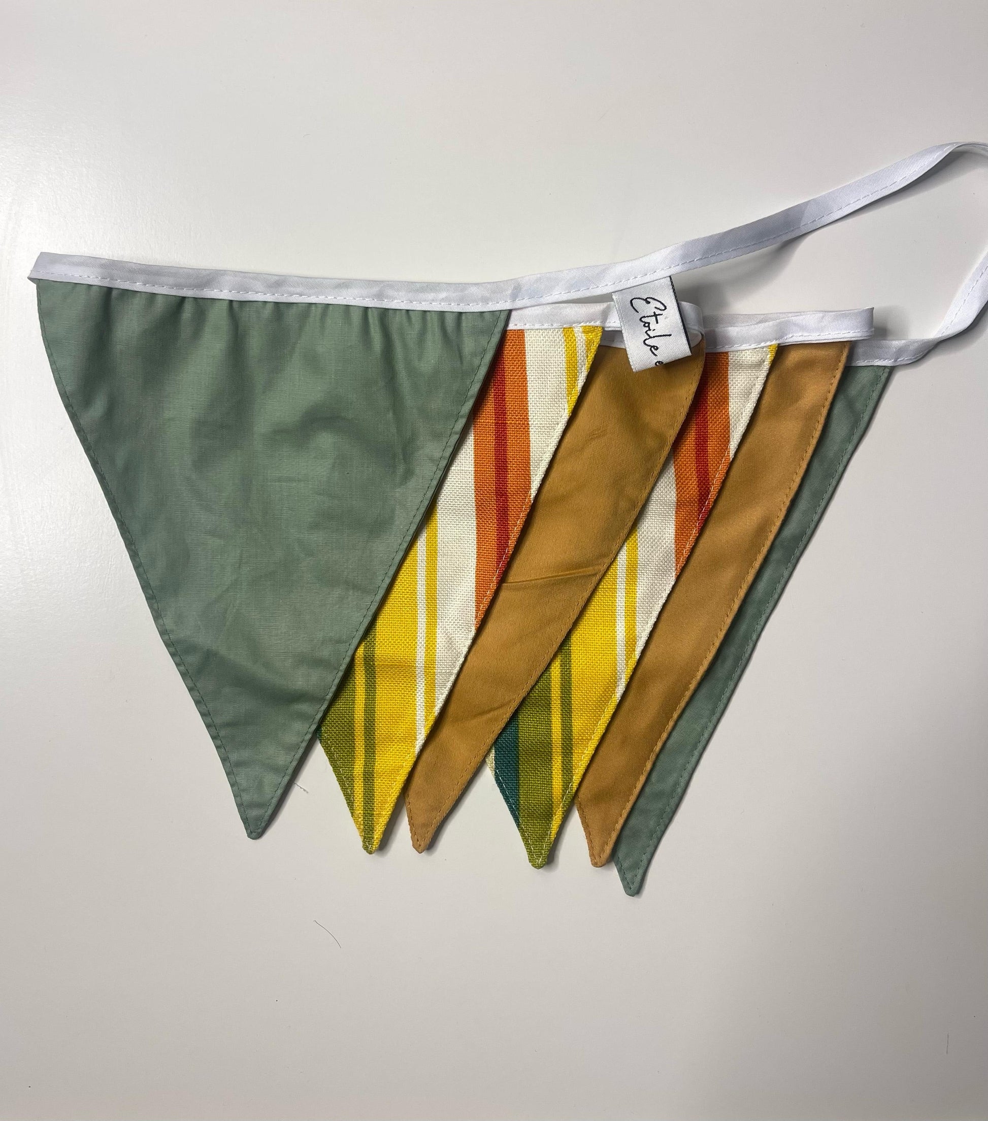 Looking to elevate your baby's nursery or create a charming backdrop for a special occasion? Our Chic Herringbone Bunting is the perfect blend of modern style and soft texture. This beautifully crafted bunting features alternating triangles of sophisticated grey and warm golden herringbone fabric, bringing a cozy yet elegant touch to any room.