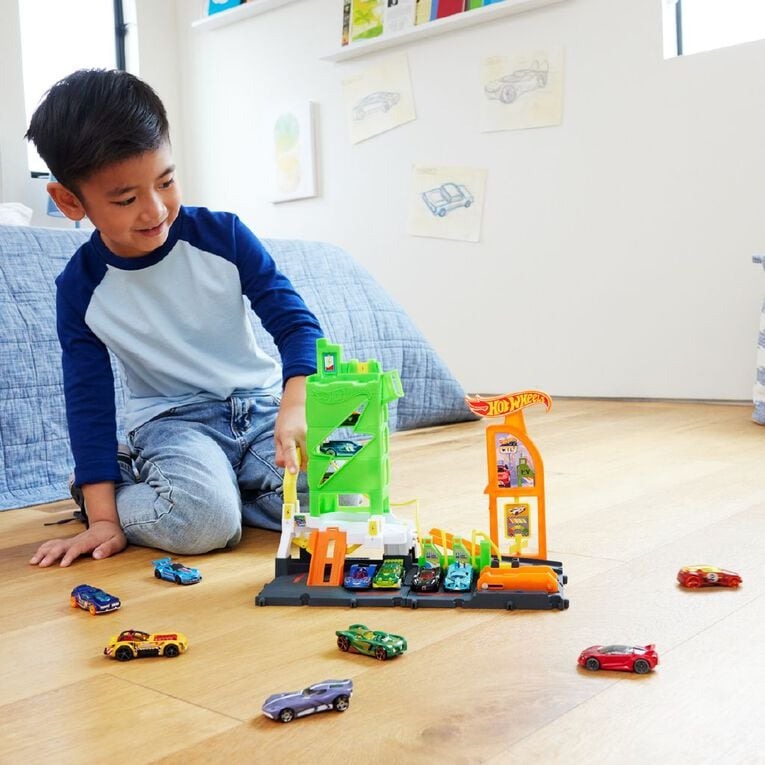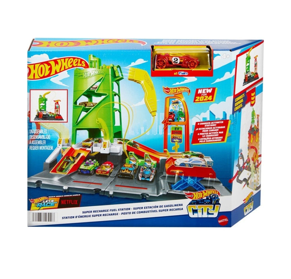 The Hot Wheels® City Supercharge Petrol Station is the perfect gift for little racers ages 4 to 8. Get ready for endless racing fun and imaginative adventures!