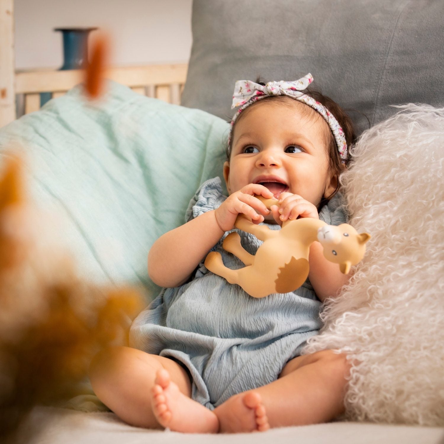 This 18 centimeters dromedary will stimulate Baby’s 5 senses.