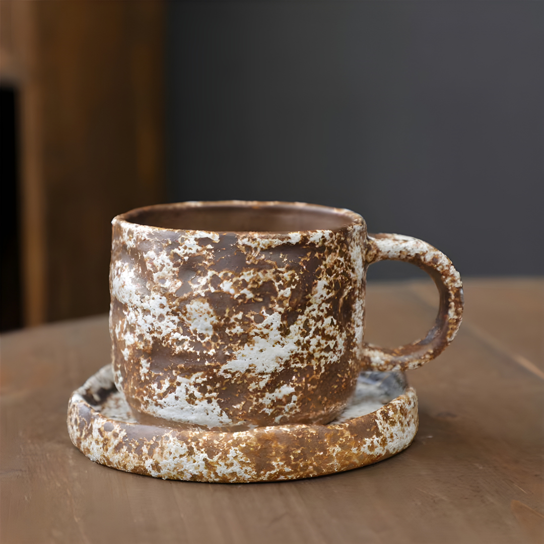 Japanese Style Rough Pottery Tea Cup and Saucer Set, a 270ml masterpiece crafted for those who seek both taste and flavor in every sip