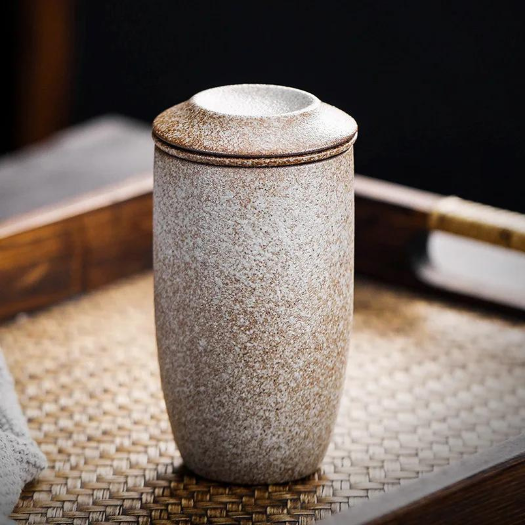 Enjoy your tea in style with our Vintage Style Stoneware Filter Tea Cup