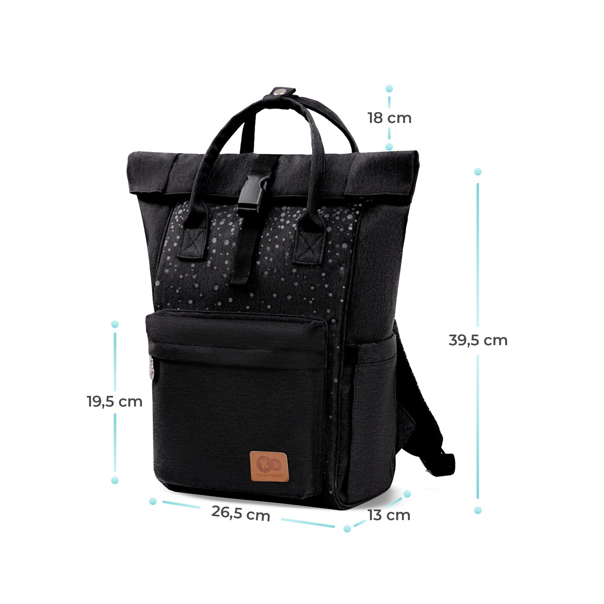 Kinderkraft MoonPack Confetti Black Bag a versatile backpack designed to enhance your daily outings and longer trips. This innovative backpack seamlessly clips to your pushchair and is equally suitable for everyday use. With nine practical pockets, including specialized compartments for wet clothes, thermal items, and wet wipes, the MOONPACK ensures that your essentials are well-organized and easily accessible.