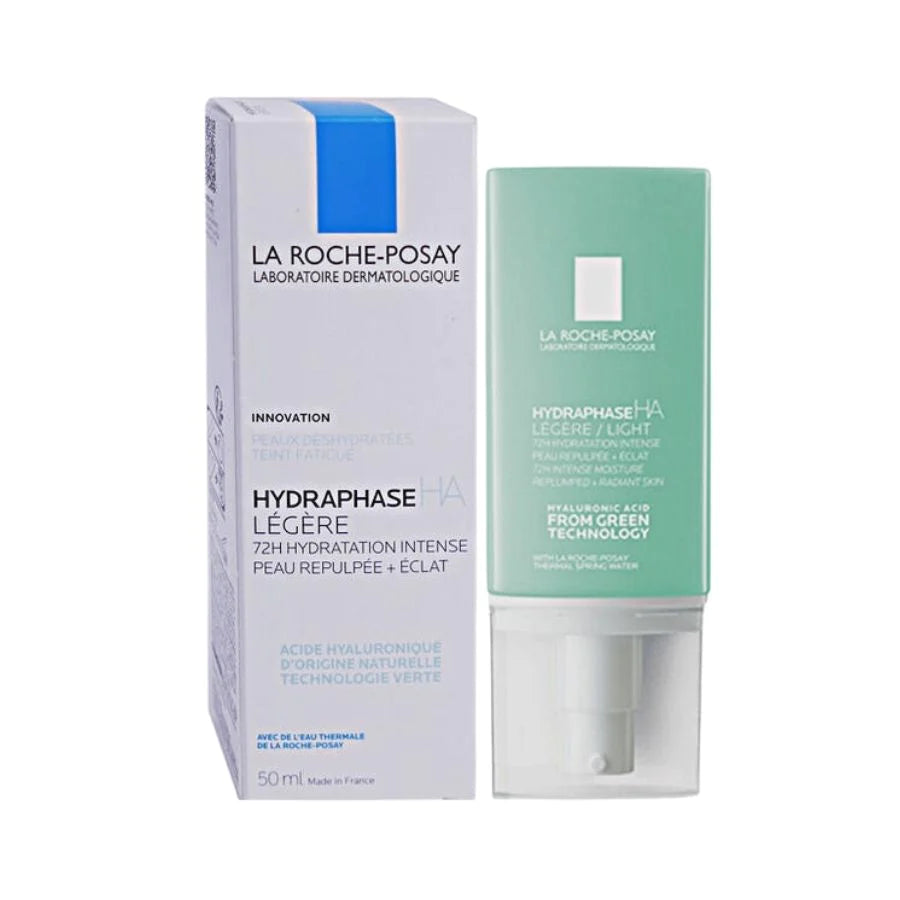 La Roche-Posay Hydraphase Light Powered by Green Technology. It moisturizes your skin for 72h. Light, fresh, and non-greasy texture. Skin is instantly radiant and plumped. The formula is a unique association of La Roche-Posay thermal spring water known for its natural soothing properties and Pure Hyaluronic Acid from Green Technology: biofermentation process using plant sugars. Tolerance tested under dermatological control.
