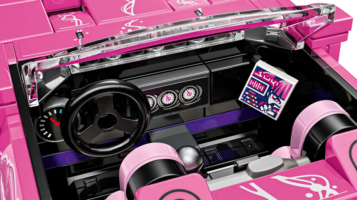 This LEGO Fast and Furious car is packed with realistic features including the interior TV monitor, rear wing, grille, headlights, wheels and the distinctive anime-style graphics on the hood, sides and back of the car. The LEGO car model set also comes with a Suki character minifigure that kids can place behind the wheel to role-play amazing street races.