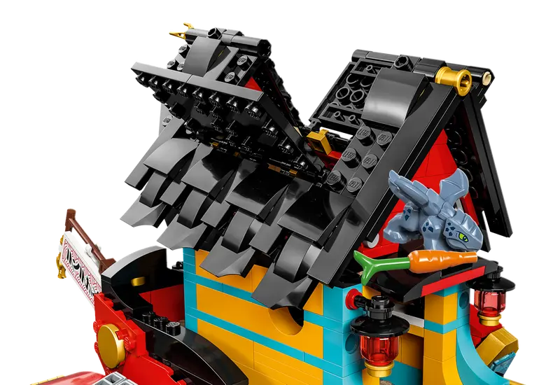 • Removable roof – Lift off the roof to reveal a navigation room and a playroom with an arcade machine for the ninja