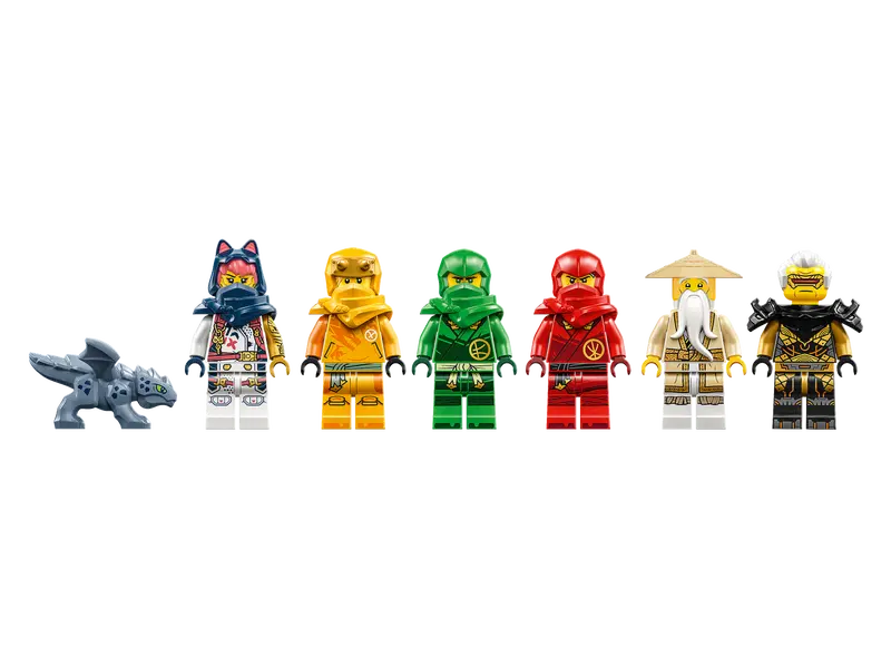 • 6 minifigures – The airship comes with Master Wu, Arin, Sora, Lloyd, Kai and Rapton minifigures, all of which are armed with at least 1 weapon for role-play battles