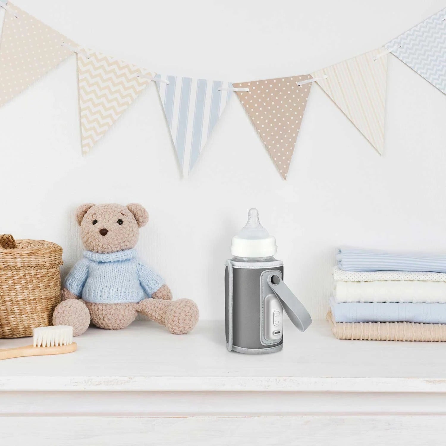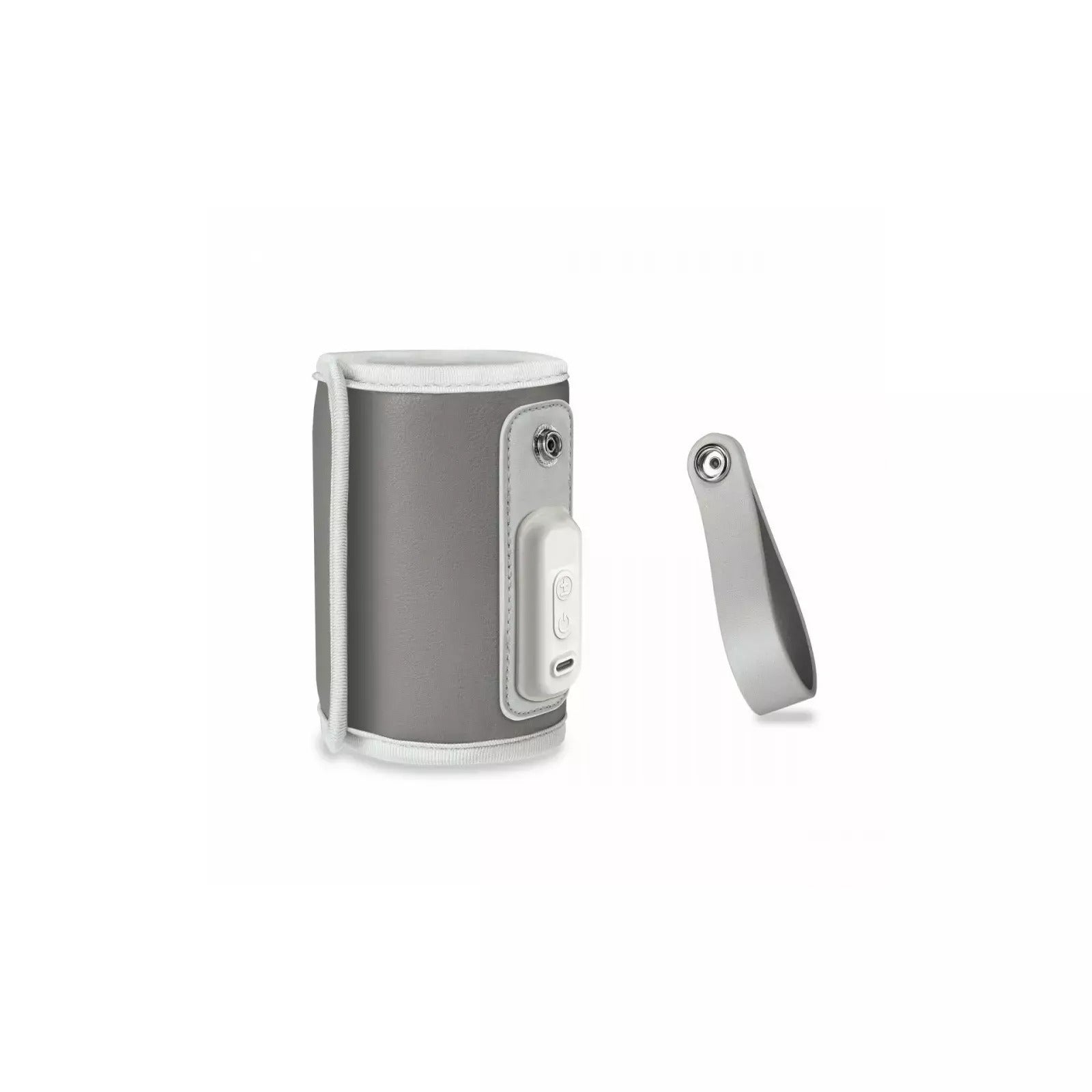 The Lionelo Thermup Go portable bottle warmer is designed to be compact and portable, making it ideal for travel. The eco-leather cover provides durability and aesthetic appeal.