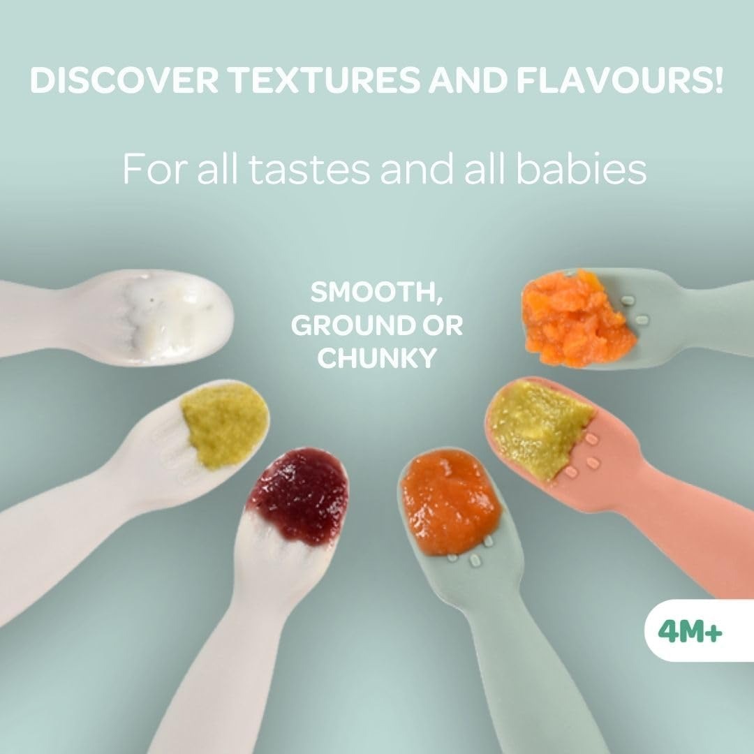 • The perfect starter silicone spoons to introduce baby to the wonderful world of self-feeding. Safe for baby - made with High Grade Silicone. Dishwasher safe.