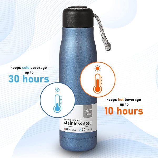 DURABLE TO DURABLE: This durable bottle is made of high-grade inner 304 outer 201 stainless steel and won’t rust or crack. Whether you’re exploring the great outdoors or taking on a fun adventure at work, your bottle will always deliver pure, clean taste that won’t retain or transfer flavor.