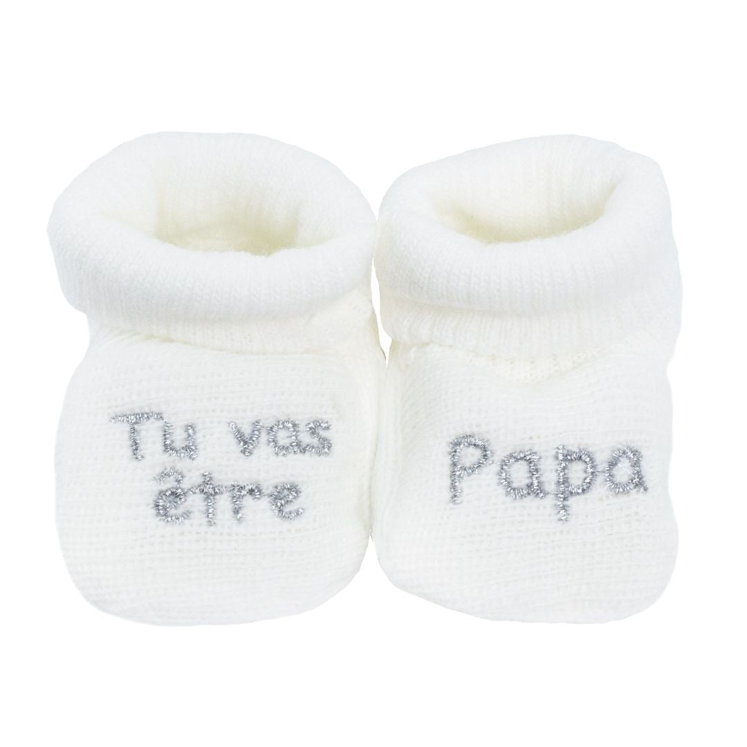 - Touching Embroidery: Features the endearing French message "Tu Vas Être Papa" on each bootie.