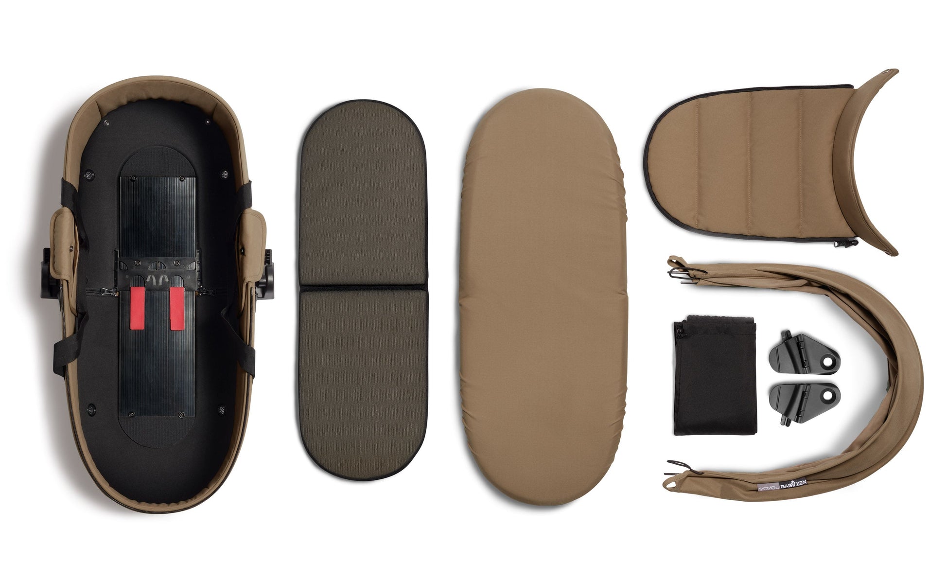 It's a real cocoon for your child. It is positioned on top of the stroller frame, so you can be close to your baby. Your baby is comfortably snuggled on a breathable double mattress. The bassinet shell and canopy have been designed to let air flow freely.